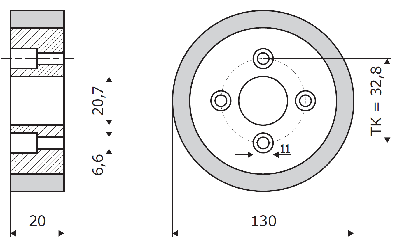 Die Rolle hat einen Alukern und wird mit der braunen Gummimischung von 70±5 ShA gummiert. Der Gummi hat einen guten Griff, hinterlässt keine Spuren und wird abriebfest.