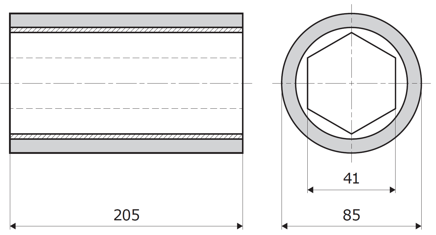 Die Rolle wird zum Einbau in verschiedene Martin Maschinen geeignet. Als Standardprogramm gibt es auch 85-205 Martin Rollen mit der weissen Gummimischung von 60±5 ShA und mit der grauen Gummimischung von 65±5 ShA.