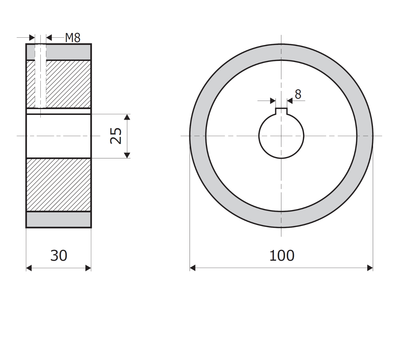 Die Rolle hat einen Alukern und wird mit der weißen Gummimischung von 60±5 ShA gummiert. Der Gummi hat einen sehr guten Griff und verliest keine Spuren auf dem Holz. Sie sind zum Einbau in verschiedene SCM Maschinen geeignet.