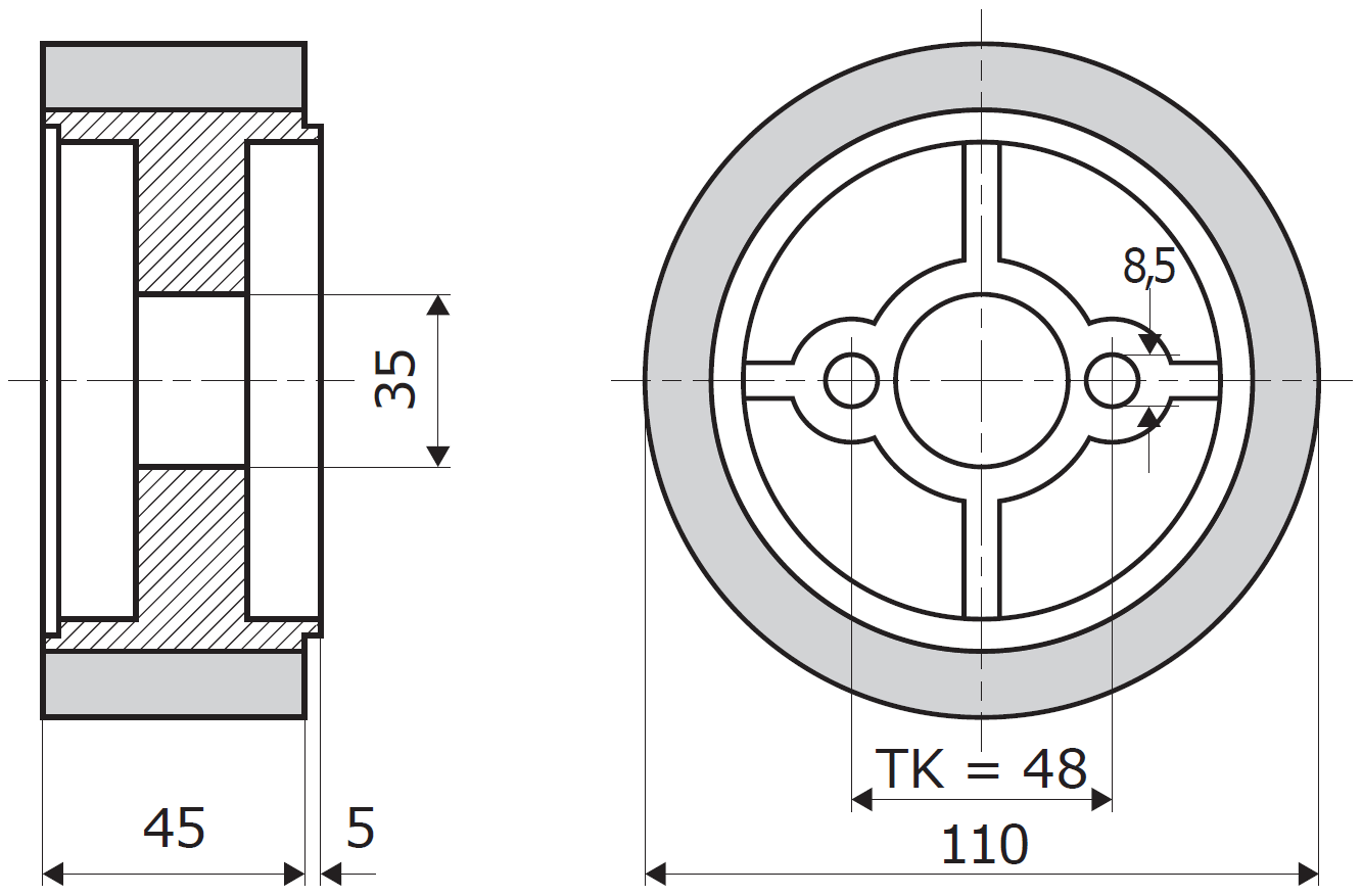 Die Rollen sind zum Einbau in verschiedene Vorschubapparate geeignet. Nach Ihrem Wunsch gummieren wir die Rollen auch mit einer anderen Gummimischung (schicken Sie uns eine Anfrage).