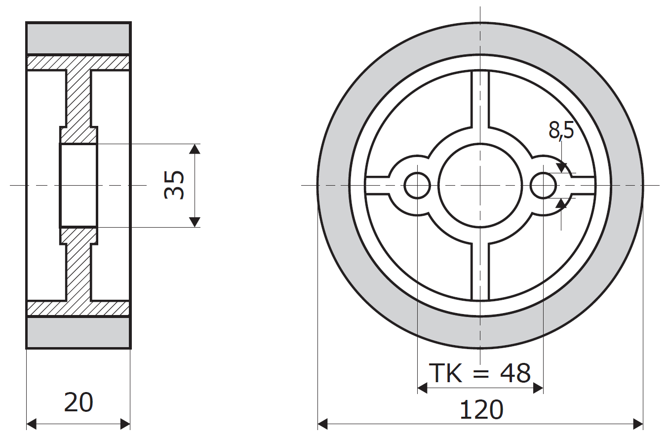 Die Rollen sind zum Einbau in verschiedene Vorschubapparate geeignet. Nach Ihrem Wunsch gummieren wir die Rollen auch mit einer anderen Gummimischung (schicken Sie uns eine Anfrage).