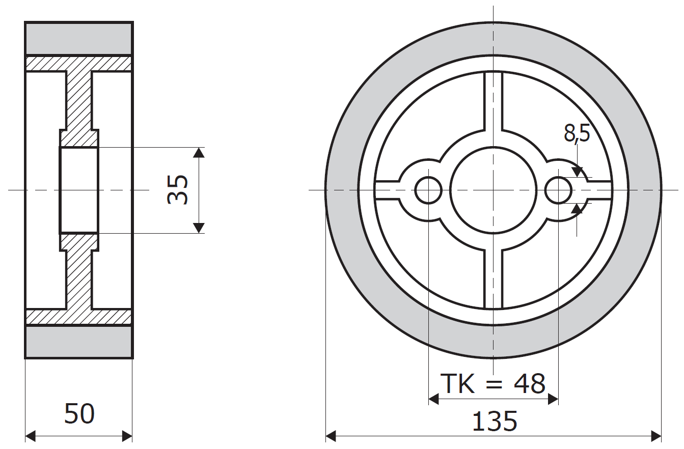 Die Rollen sind zum Einbau in verschiedene Vorschubapparate geeignet. Nach Ihrem Wunsch gummieren wir die Rollen auch mit einer anderen Gummimischung (schicken Sie uns eine Anfrage).