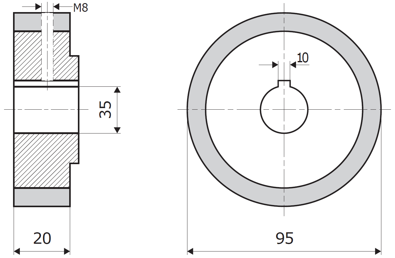 Die Rolle hat einen Alukern und wird mit der braunen Gummimischung von 70±5 ShA gummiert. Der Gummi hat einen guten Griff, verliest keine Spuren und wird abriebfest.
