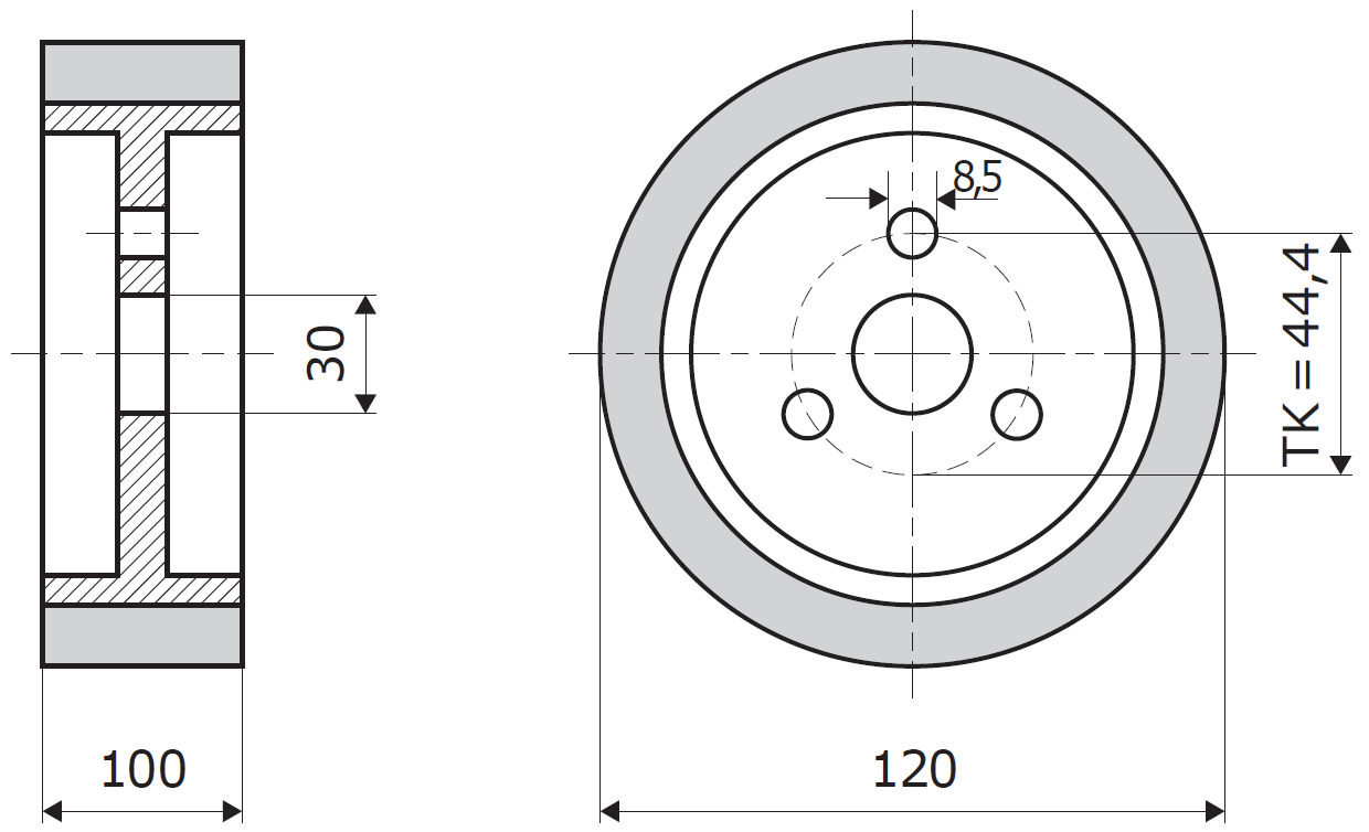 Die Rolle hat einen Alukern und wird mit der braunen Gummimischung von 70±5 ShA gummiert. Der Gummi hat einen guten Griff, hinterlässt keine Spuren und wird abriebfest.