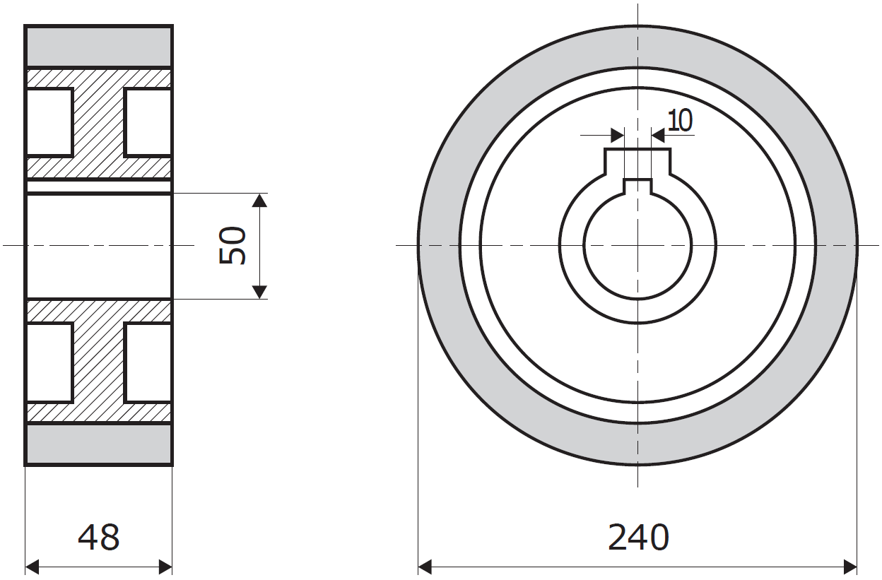 Die Rolle wird für den Einbau in verschiedene Maschinen geeignet. Nach Ihrem Wunsch gummieren wir sie mit einer anderen Gummimischung (schicken Sie uns eine Anfrage).