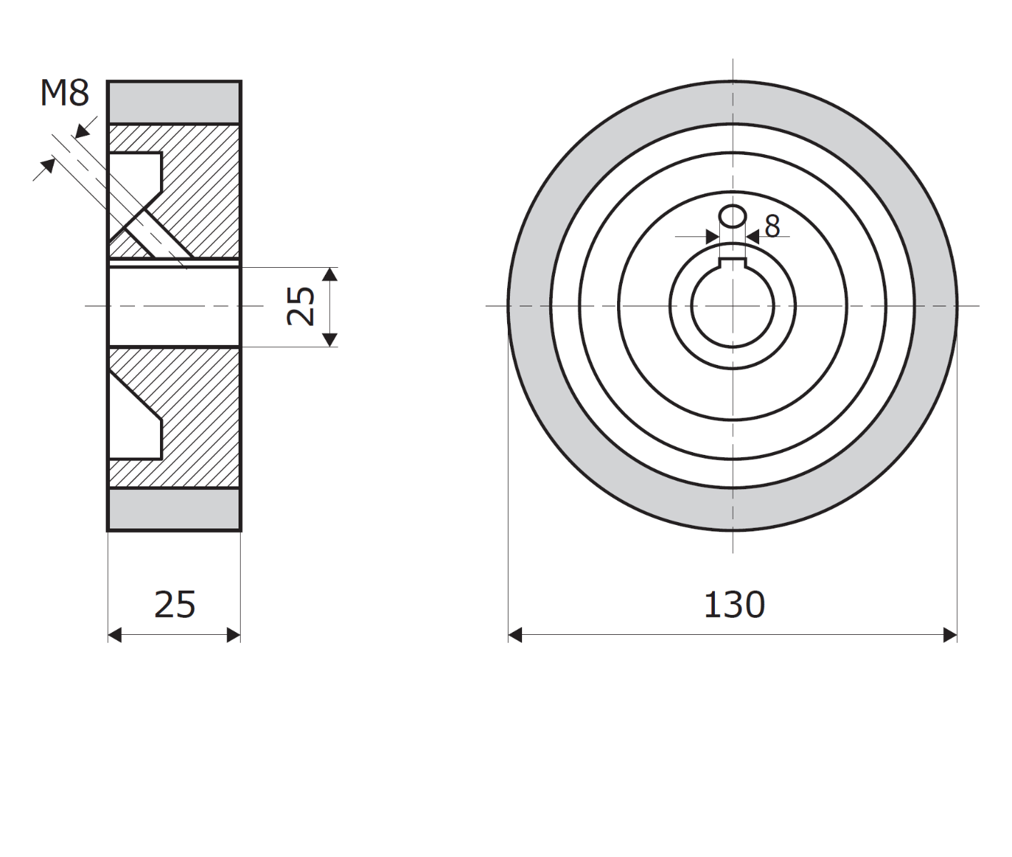 Die Rolle hat einen Stahlkern und wird mit der braunen Gummimischung von 70±5 ShA gummiert. Der Gummi hat einen guten Griff, verliest keine Spuren und wird abriebfest. Die Rolle wird für den Einbau in verschiedene TSN Maschinen geeignet.