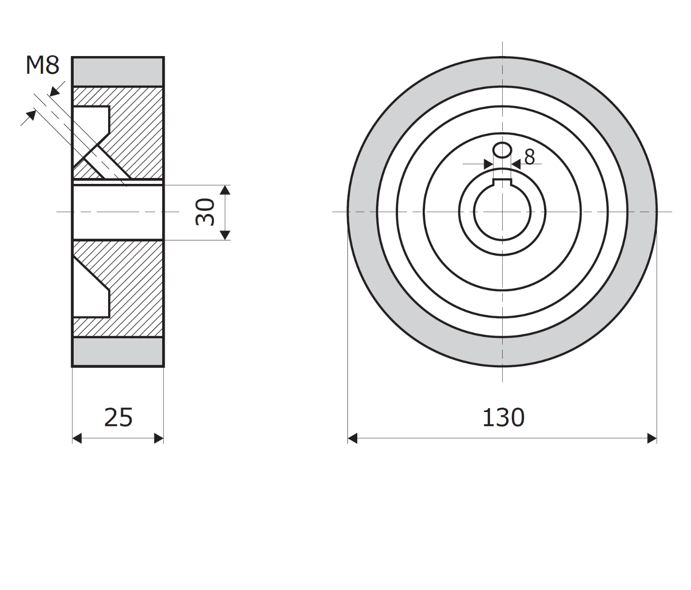 Die Rolle hat einen Stahlkern und wird mit der braunen Gummimischung von 70±5 ShA gummiert. Der Gummi hat einen guten Griff, hinterlässt keine Spuren und wird abriebfest. Die Rolle wird für den Einbau in verschiedene TSN Maschinen geeignet.