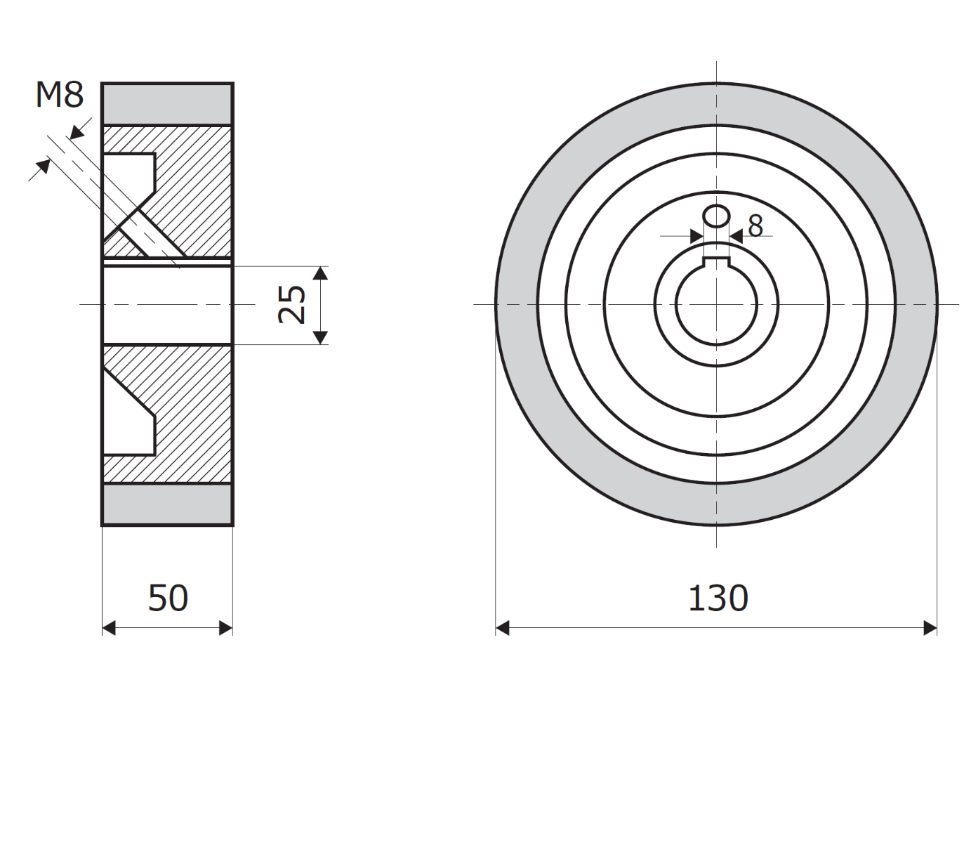 Die Rolle hat einen Stahlkern und wird mit der braunen Gummimischung von 70±5 ShA gummiert. Der Gummi hat einen guten Griff, verliest keine Spuren und wird abriebfest. Die Rolle wird für den Einbau in verschiedene TSN Maschinen geeignet.