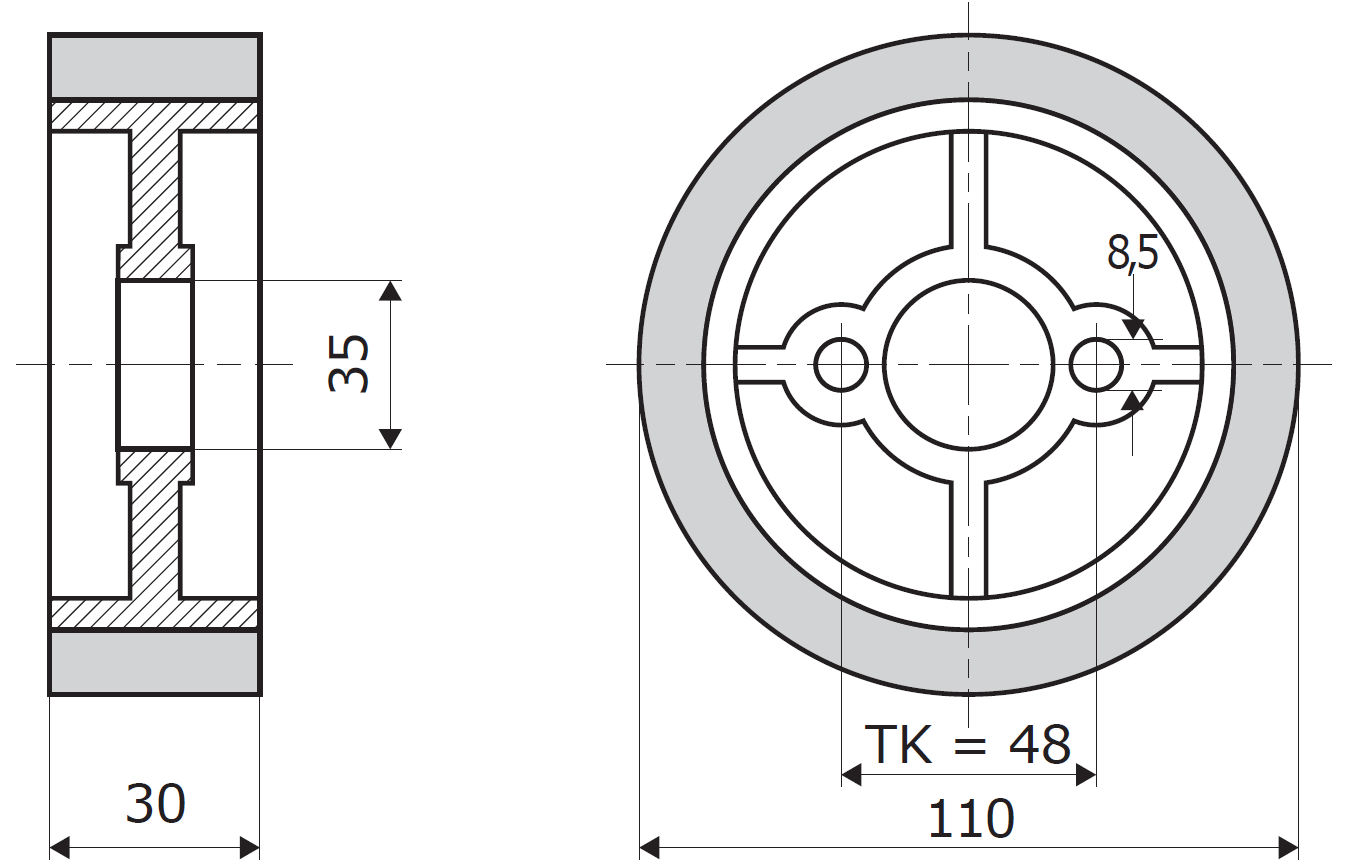 Die Rollen sind zum Einbau in verschiedene Vorschubapparate geeignet. Nach Ihrem Wunsch gummieren wir die Rollen auch mit einer anderen Gummimischung (schicken Sie uns eine Anfrage).