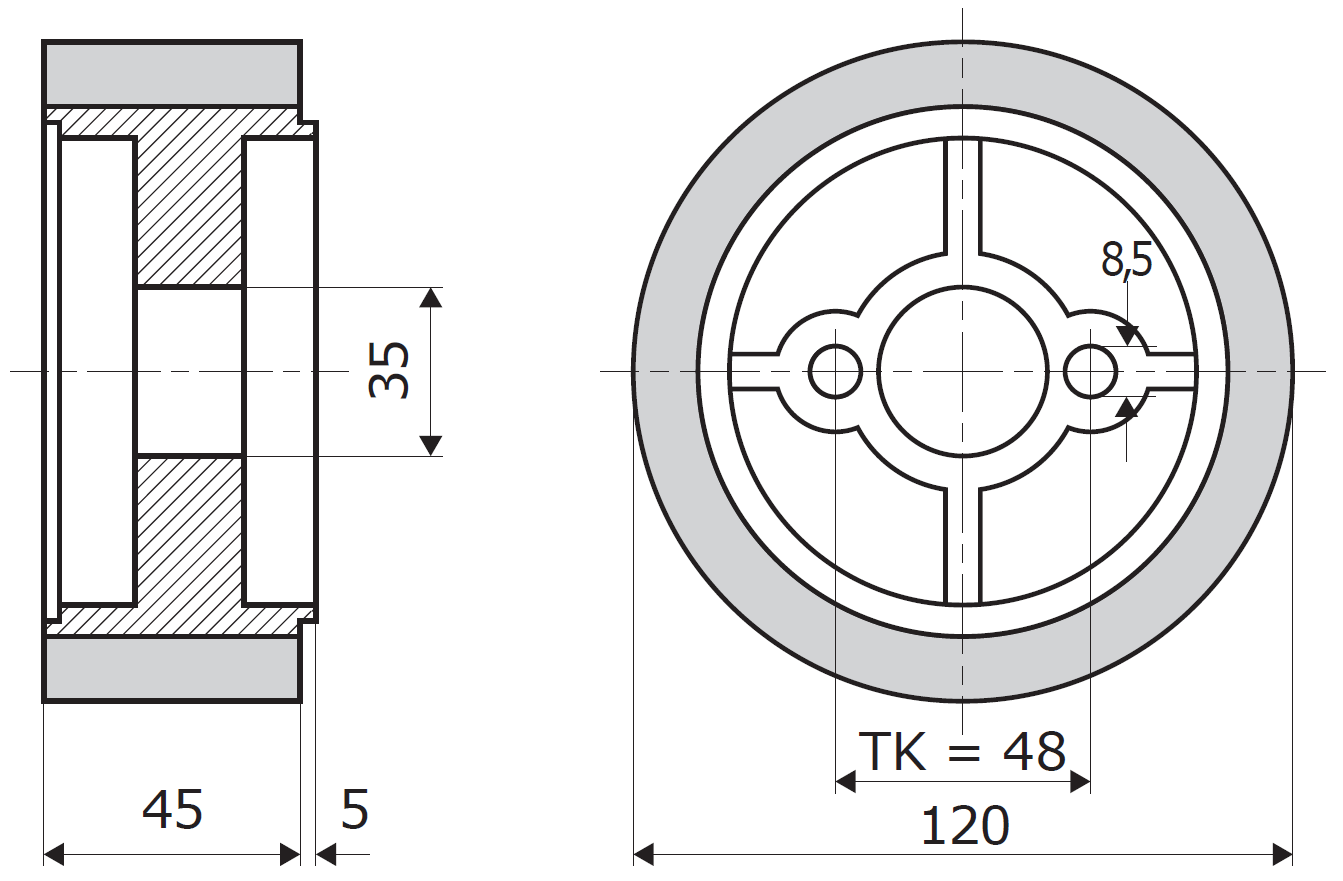 Die Rollen sind zum Einbau in verschiedene Vorschubapparate geeignet. Nach Ihrem Wunsch gummieren wir die Rollen auch mit einer anderen Gummimischung (schicken Sie uns eine Anfrage).