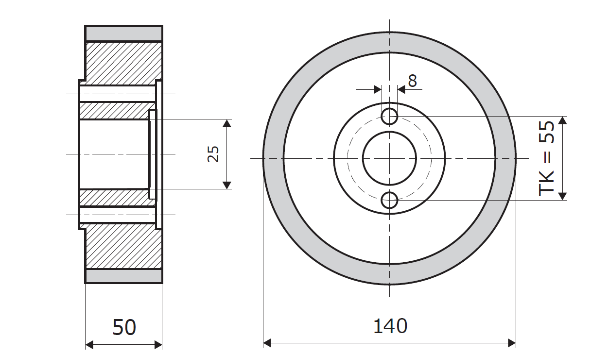 Die Rolle hat einen Stahlkern und wird mit der braunen Gummimischung von 70±5 ShA gummiert. Der Gummi hat einen guten Griff, verliest keine Spuren und wird abriebfest. Die Rolle wird für den Einbau in verschiedene Wadkin Maschinen geeignet.