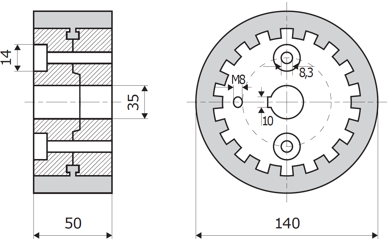 U (keyway width) = 10