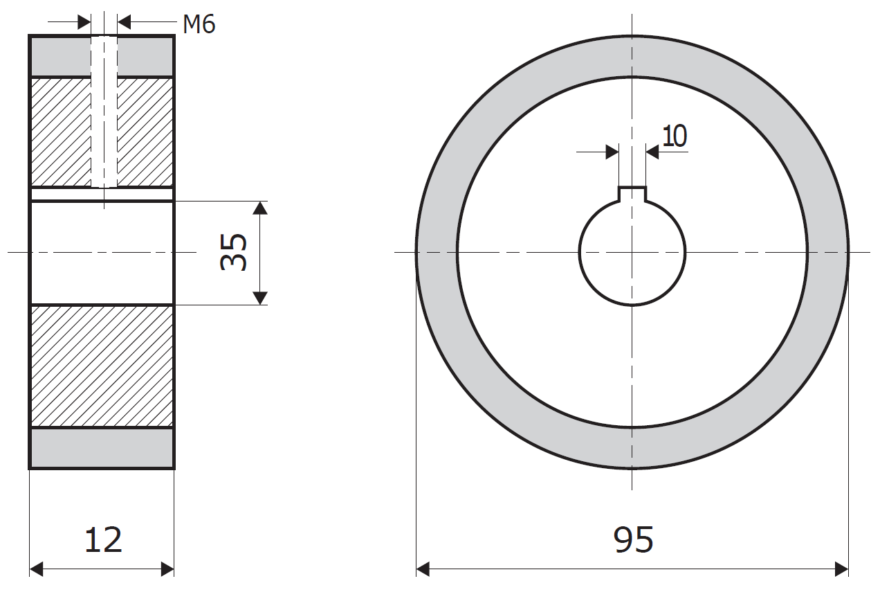 Die Rolle hat einen Alukern und wird mit der braunen Gummimischung von 70±5 ShA gummiert. Der Gummi hat einen guten Griff, verliest keine Spuren und wird abriebfest.