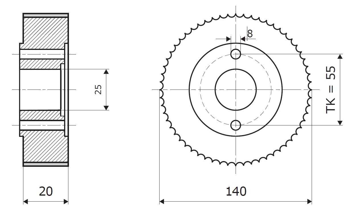 • das Zahnprofil (A, B, C, D, E, F, G, H, X – wenn Sie das Zahnprofil X auswählen, wählen Sie die Richtung der Verzahnung und das Material nicht, da es nur als verchromt zur Verfügung steht)