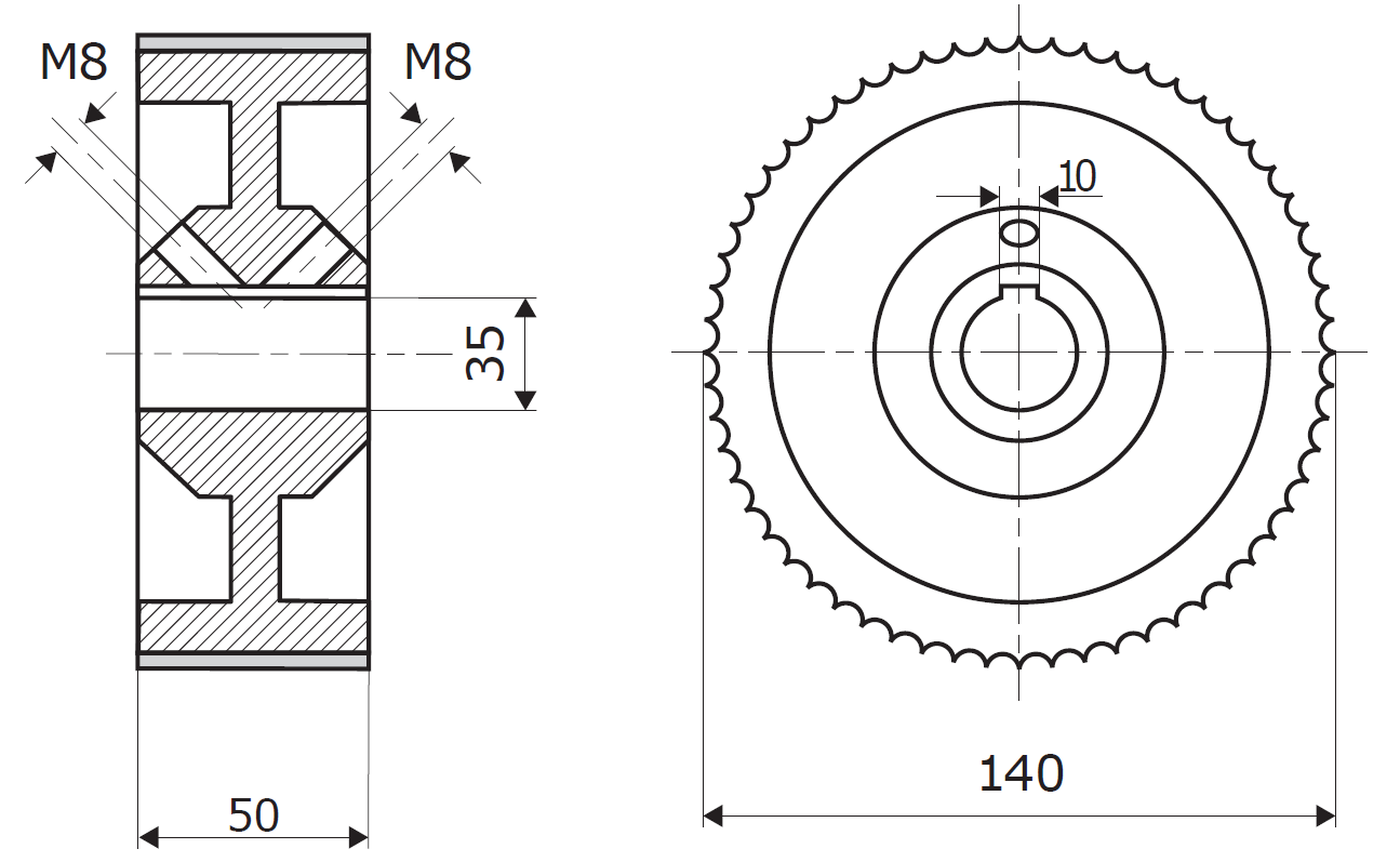 • Zahnprofil (A, B, C, D, E, F, G, H, X – beim Profil X wählt der Kunde weder die Richtung der Verzahnung und das Material nicht, weil es nur als verchromt zur Verfügung steht)