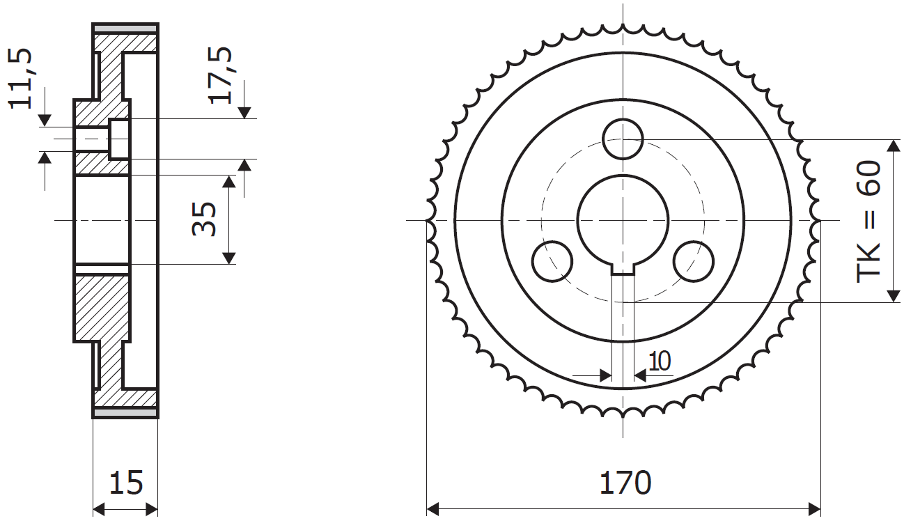 • Zahnprofil (A, B, C, D, E, F, G, H, X – beim Profil X wählt der Kunde weder die Richtung der Verzahnung und das Material nicht, weil es nur als verchromt zur Verfügung steht)
