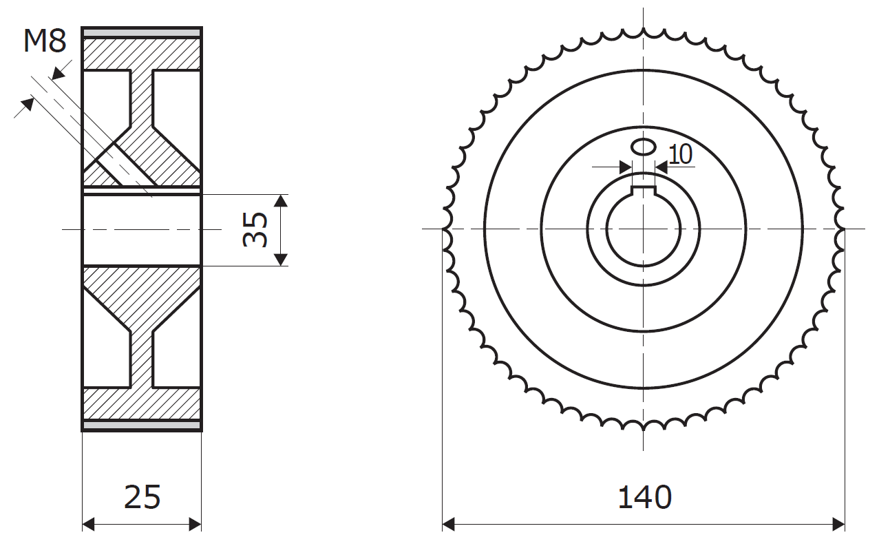 Zobati kolut je narejen iz poboljšanega jekla, katerega kalimo in naknadno kromamo, za boljšo trdnost.